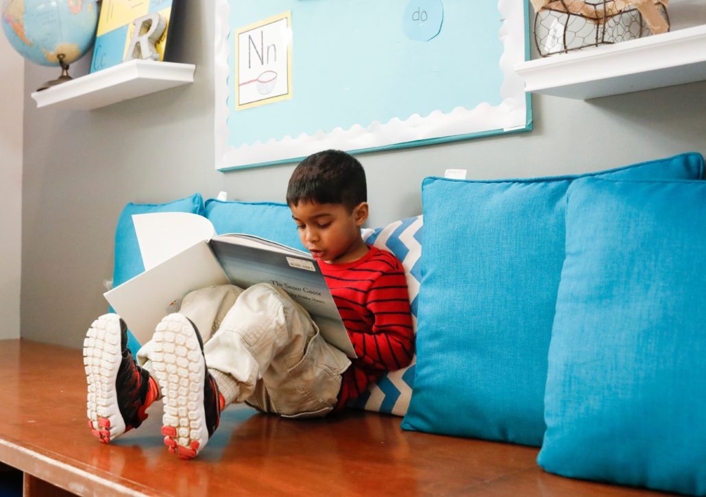 Classrooms contain curtains, picture frames, and plants and we place photos, artwork, and other items at the children’s eye level. We use calming, natural tones and include soft elements such as pillows, soft seating areas, rugs, and soft lighting to make our school as comfortable and as nurturing as home.